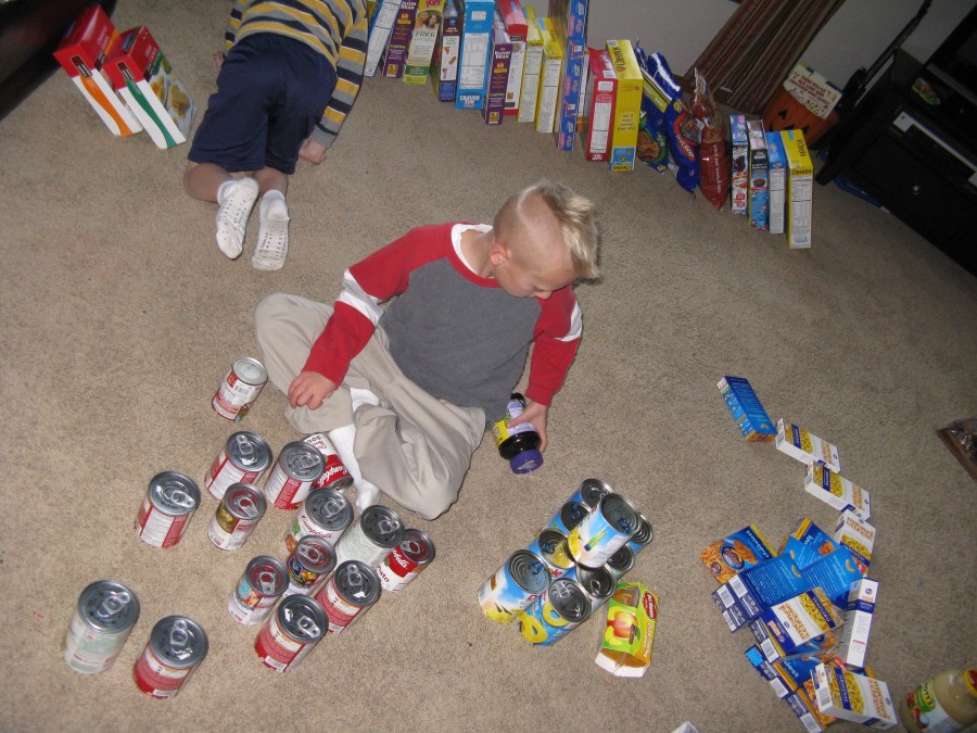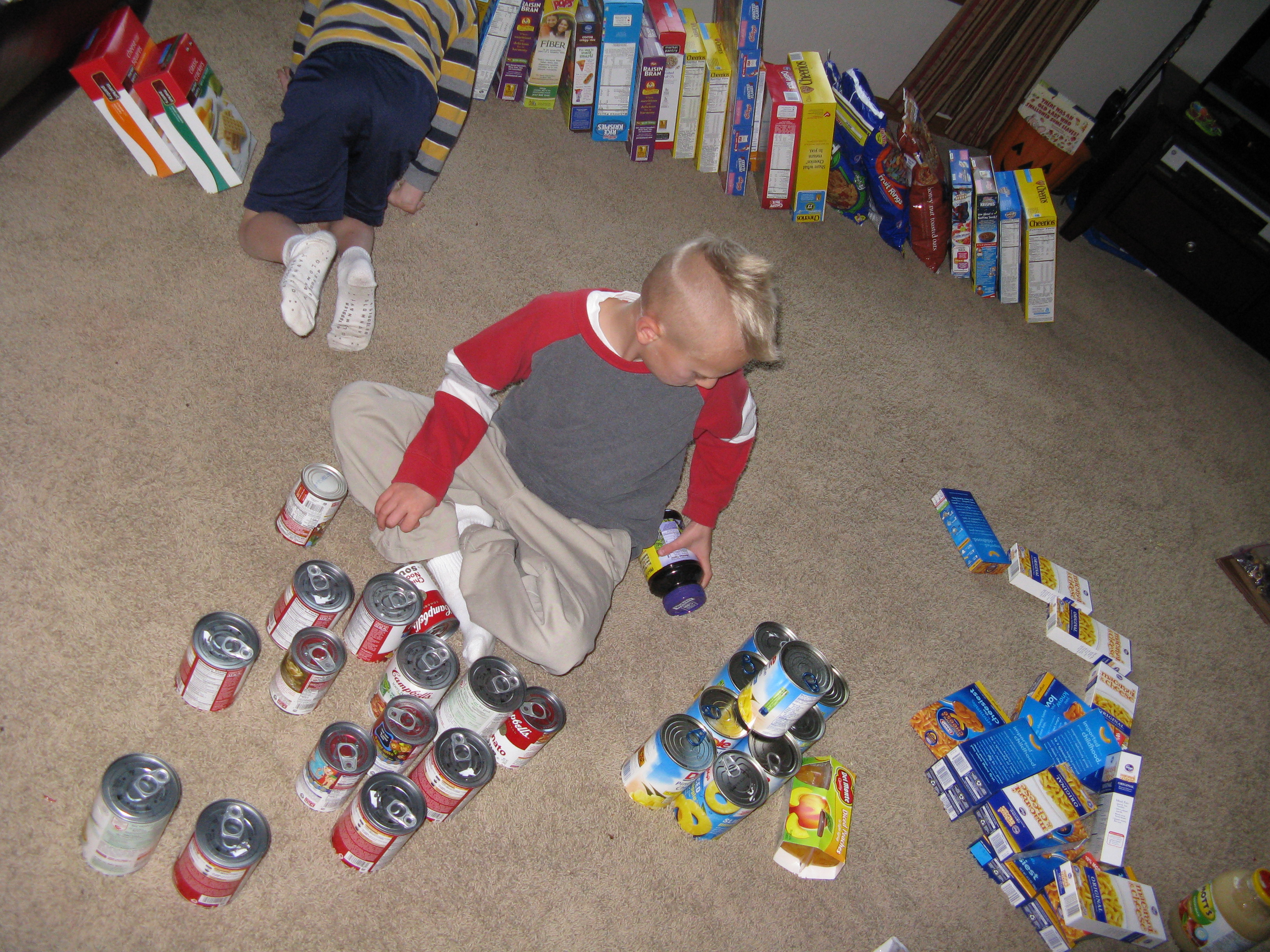 Here are the boys sorting the donations from their parties!