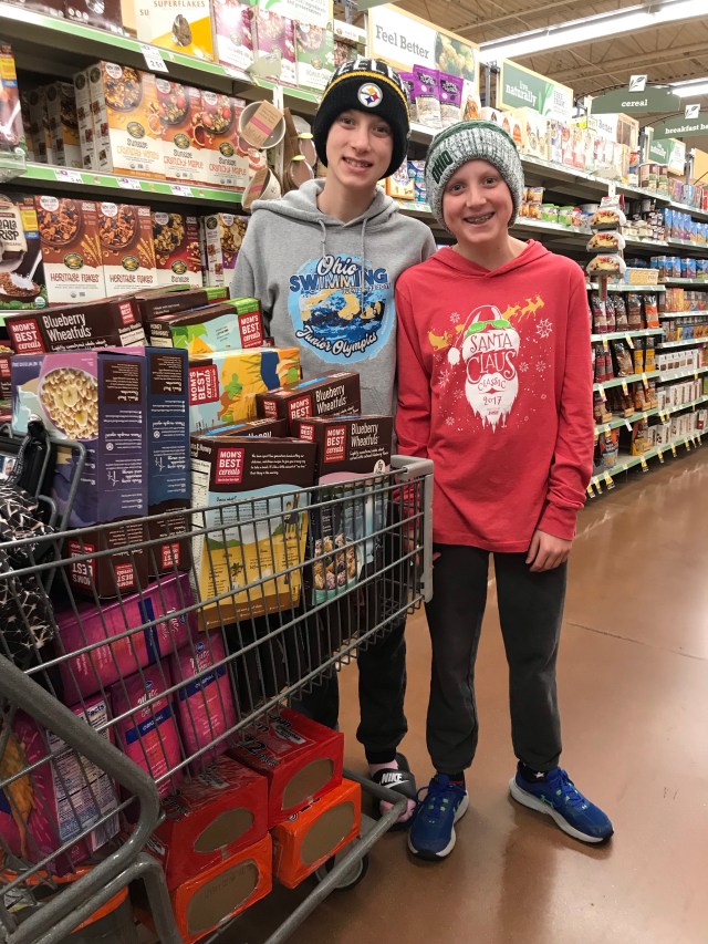 The boys did so well donating to kids in need in Hamilton County, Ohio. At the end of 2018, the boys maximized their donations and chose 203 panrty items for Operation Give Back!
