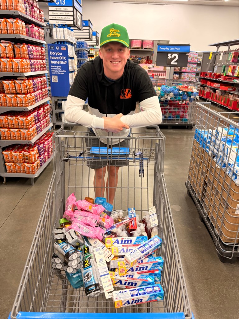 The boys decided to purchase hygiene items for this 2025 donation! They chose toothpaste, toothbrushes, deodorant, body wash, razors, and hand soap. In total, one hundred twelve hygiene items were bought and delivered to the PEACE Community Resource Center Food Pantry at Saddleback Church.